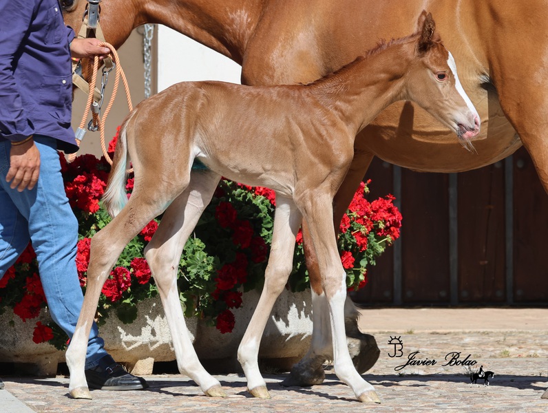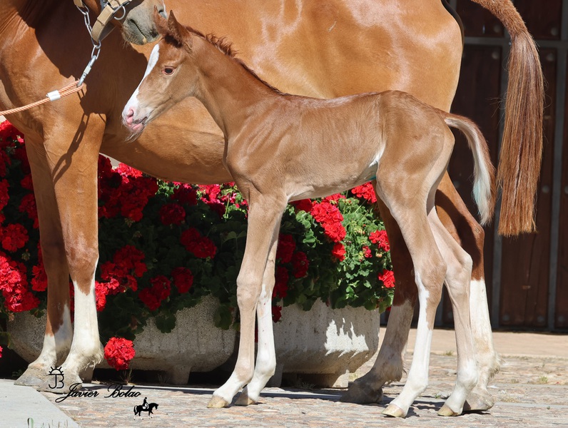 El 11 de abril de 2025 nació en casa una potra muy especial: Delicia JB, una preciosa alazana cuatralba con careta, que desde el primer momento ha mostrado carácter, clase y mucha presencia.